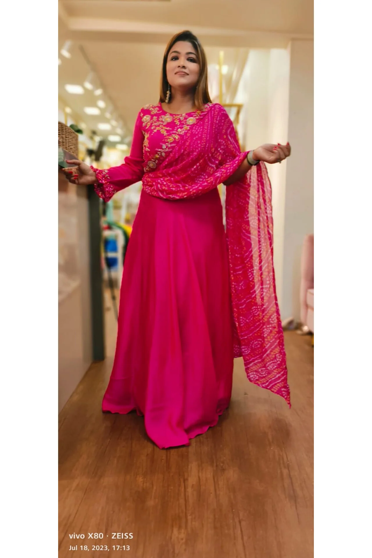 Chikankari Angrakha side style thread embroidery full set and Orange dupatta