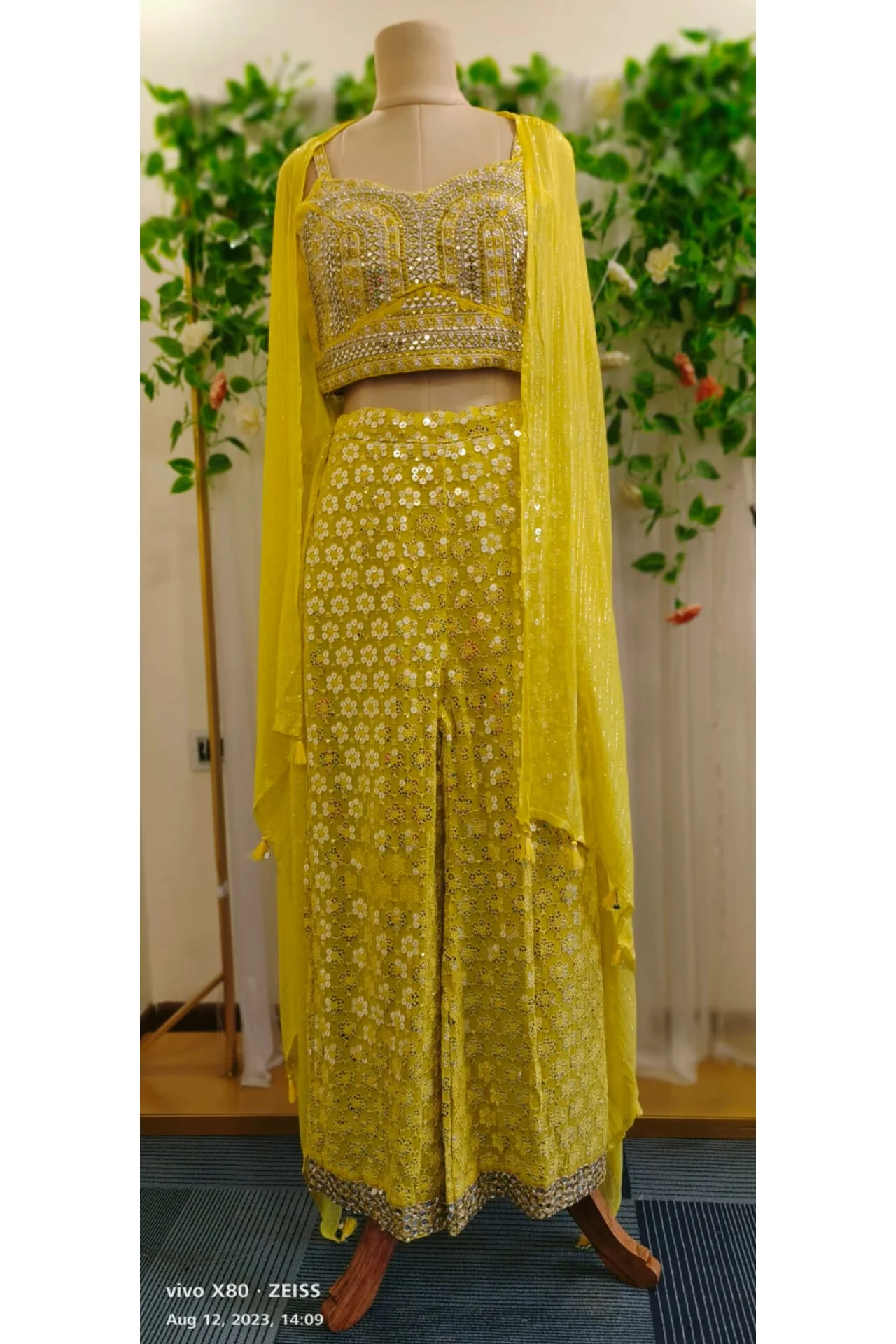 Black thread and Tara embroidered georgette skirt with top and georgette dupatta